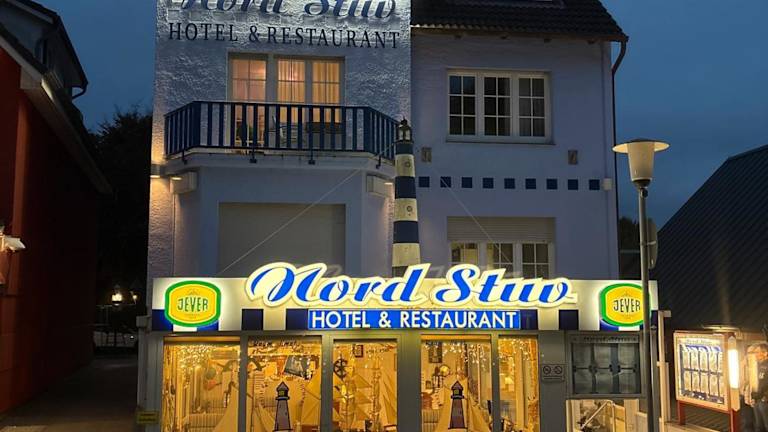 Im Hotel-Restaurant Nord-Stuv erwartet Sie ein Restaurant im maritimen Stil, das Spezialitäten aus der Nordsee und regionale deutsche Küche serviert. Hier können Sie köstliche Gerichte genießen und sich kulinarisch verwöhnen lassen.
