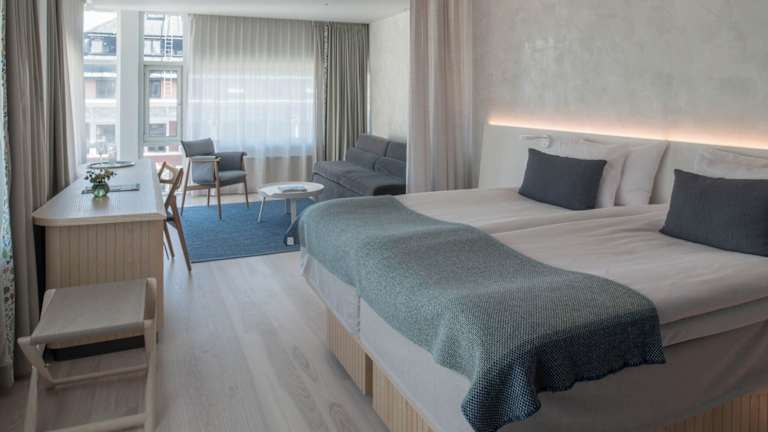 Das Nordic Light Hotel bietet modern eingerichtete Zimmer mit kostenfreiem WLAN, Laptop-Safe und Sat-TV. Die Zimmer verfügen über luxuriöse Betten der schwedischen Marke Anders Hilding und bieten den Gästen allen Komfort, den sie für einen angenehmen Aufenthalt benötigen. Die Badezimmer sind mit hochwertigen Pflegeprodukten ausgestattet.