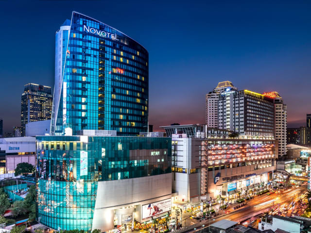 Das familienfreundliche 4-Sterne-Hotel Novotel Bangkok Platinum Pratunam im Herzen des Modeviertels liegt gegenüber der Platinum Mall und nur wenige Gehminuten von Central World Shopping Center, Siam Square, MBK, Pratunam-Markt und den BTS-Haltestellen en tfernt. Entspannen Sie nach einem langen Einkaufsbummel in den ruhigen Zimmern mit moderner Einrichtung oder nach dem Sport in der stilvollen Platinum Bar. Genießen Sie den Blick vom modernen Fitnessstudio aus.