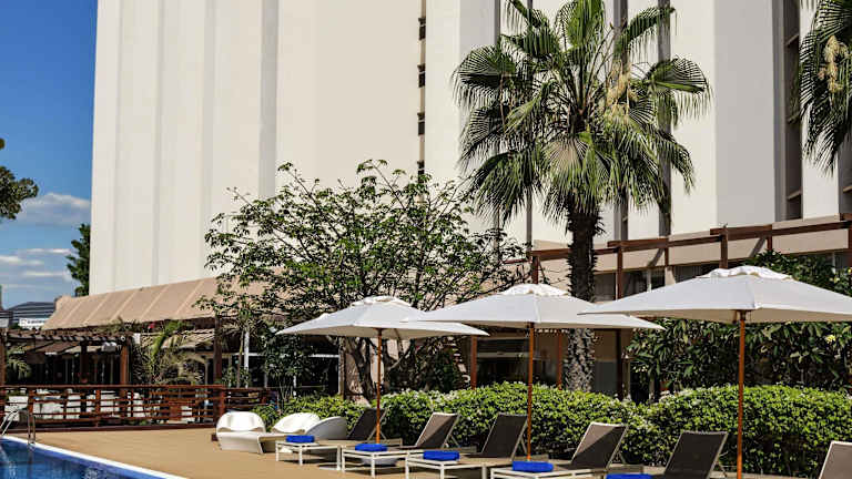 Das Novotel Dakar bietet verschiedene Freizeiteinrichtungen, darunter Innen- und Außenpools, Tennisplätze, ein Fitnessstudio und Massageanwendungen. Gäste können auch die Terrasse mit Sonnenliegen und Sonnenschirmen nutzen.
