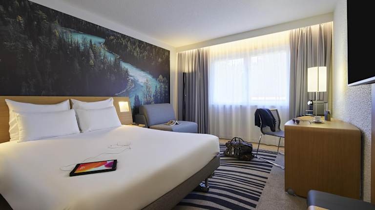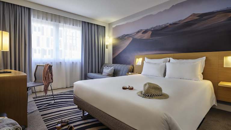 Die Zimmer sind modern eingerichtet und bieten ein angenehmes Raumklima. Zu den Annehmlichkeiten gehören eine Klimaanlage, ein Doppelbett, ein Safe, eine Minibar, ein Schreibtisch sowie ein Minikühlschrank und eine Tee-/Kaffeemaschine. Das Bad ist mit einer Dusche und einer Badewanne ausgestattet und bietet Kosmetikartikel sowie einen Haartrockner. Auch Zimmer mit barrierefreiem Badezimmer sind verfügbar.