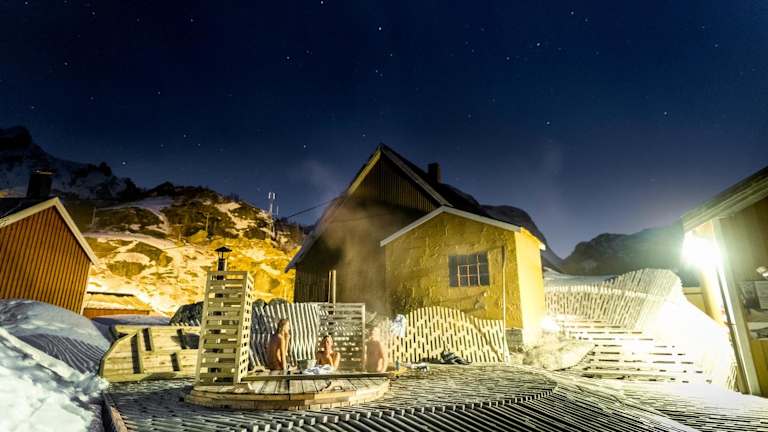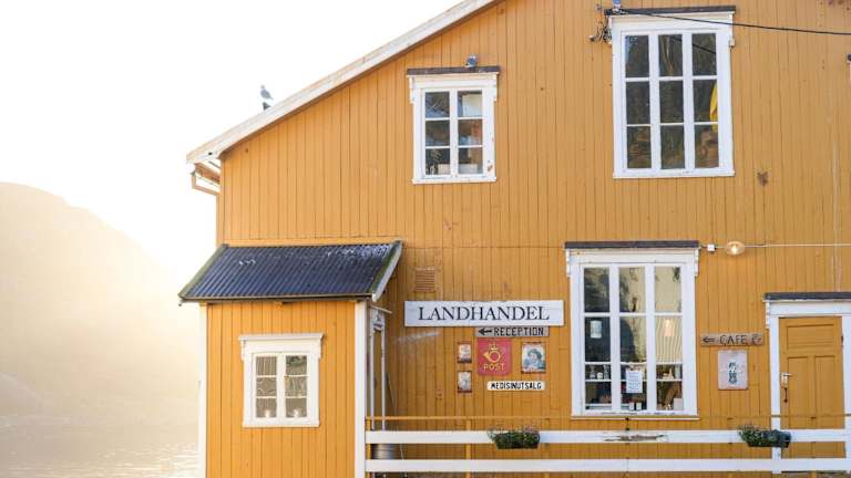 Im Nusfjord Village & Resort genießen die Gäste verschiedene kulinarische Angebote. Das Restaurant Karoline serviert eine Auswahl an Gerichten, während die Oriana Tavern italienische Pizza anbietet. Im Landhandleriet Café können Fischsuppe, Waffeln und Kuchen probiert werden.
