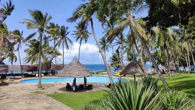 Das Hotel liegt direkt am Strand von Nyali Beach, einem beliebten Urlaubsziel an der Küste Kenias. Der Strand bietet feinen Sand und ist ideal zum Sonnenbaden und Entspannen. Der internationale Flughafen ist nur etwa 50 km entfernt, was eine bequeme Anreise ermöglicht.