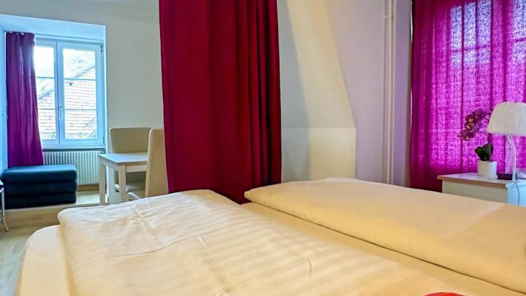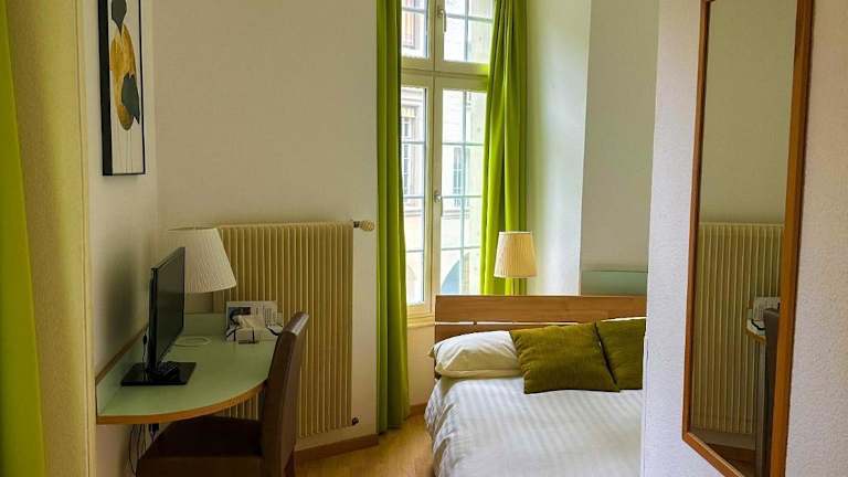 Die Zimmer im Hotel Nydeck sind hell und voll ausgestattet, um Ihren Aufenthalt so angenehm wie möglich zu gestalten. Die komfortablen Lehnstühle laden zum Entspannen ein und das Parkett verleiht den Zimmern eine warme Atmosphäre. Die Badezimmer sind mit einem beleuchteten Kosmetikspiegel ausgestattet, um Ihnen bei Ihrer täglichen Pflege zu helfen. Jedes Zimmer bietet Ihnen einen herrlichen Blick auf die grünen Hügel und den Fluss Aare, so dass Sie die Schönheit der Umgebung direkt von Ihrem Zimmer aus genießen können.