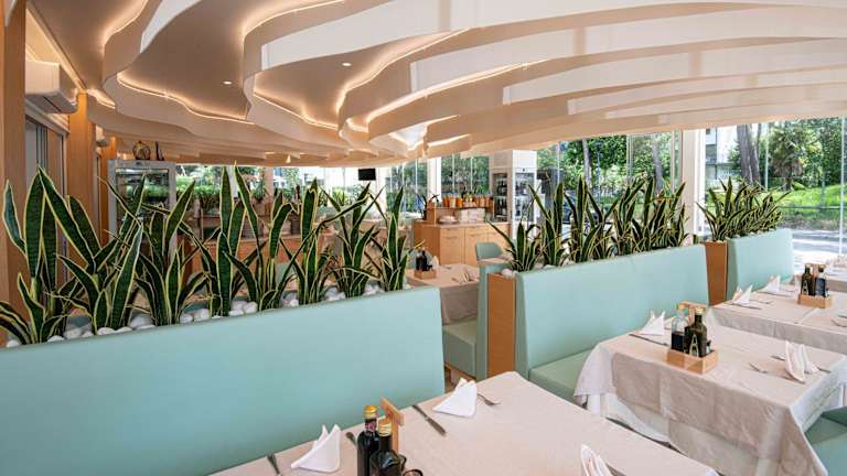 Das Hotel Oasi verwöhnt Sie mit einem reichhaltigen Frühstücksbuffet, bei dem Sie süße und herzhafte Speisen genießen können. Im hoteleigenen Restaurant können Sie mediterrane Köstlichkeiten probieren, darunter spezialisierte Gerichte wie Pizza, Fleisch- und Fischgerichte. Lassen Sie sich von den kulinarischen Köstlichkeiten verwöhnen und genießen Sie eine Mahlzeit in gemütlicher Atmosphäre.