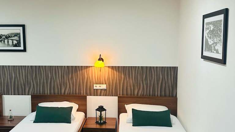 Das Hotel Oaza befindet sich im Herzen von Konjic, nur 50 m von der Altstadt und der Alten Brücke entfernt. Diese zentrale Lage ermöglicht es Ihnen, bequem die Sehenswürdigkeiten der Stadt zu erkunden. Konjic liegt am Ufer des Flusses Neretva und ist bekannt für den beeindruckenden Atombunker von Tito. Die Stadt bietet eine ruhige und entspannte Atmosphäre und ist ein idealer Ausgangspunkt für Ausflüge in die nahe gelegenen Städte Sarajevo und Mostar. Die Bushaltestelle ist nur 2 Gehminuten entfernt und der Flughafen Sarajevo ist in 40 km erreichbar.