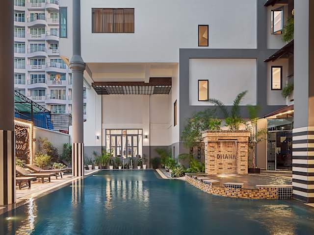 Das Ohana Phnom Penh Palace Hotel ist ein wunderbar gelegenes Hotel im Herzen des Viertels Riverside in Phnom Penh. Mit seinen beiden Außenpools, dem Restaurant und der Bar auf dem Dach bietet es seinen Gästen eine entspannte Atmosphäre und einen atemberaubenden Panoramablick auf die Stadt und die umliegenden Gewässer. Die Zimmer sind komfortabel und gut ausgestattet, und das Hotel bietet kostenloses WLAN in allen Bereichen. Die zentrale Lage ermöglicht es den Gästen, die Attraktionen der Stadt bequem zu erkunden. Das freundliche und hilfsbereite Personal steht rund um die Uhr zur Verfügung, um bei der Organisation von Ausflügen zu helfen.