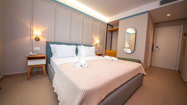 Die klimatisierten Zimmer im Hotel Olive Ksamil sind komfortabel und bieten Ihnen alles, was Sie für einen angenehmen Aufenthalt benötigen. Jedes Zimmer verfügt über einen Schreibtisch, einen Safe, einen Flachbild-TV, einen Balkon und ein eigenes Bad mit einem Bidet. Die Zimmer sind geschmackvoll eingerichtet und mit hochwertiger Bettwäsche ausgestattet.