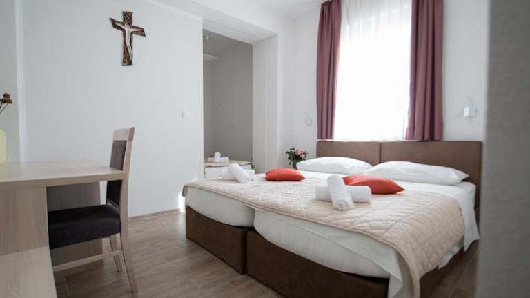 Das Hotel Olivia in Međugorje bietet Ihnen eine komfortable Unterkunft mit einem Restaurant und einer Bar. Die Lage des Hotels ist ideal, da es nur wenige Gehminuten von der Kirche St. Jacobs und dem Erscheinungsberg entfernt liegt. Das Hotel bietet kostenfreies WLAN und Privatparkplätze. Die Zimmer sind modern eingerichtet und verfügen über eine Klimaanlage, einen Schreibtisch und ein eigenes Badezimmer. Einige Zimmer bieten zudem einen Balkon. Jeden Morgen erwartet Sie ein leckeres Frühstücksbuffet. Das Hotel bietet auch eine Gemeinschaftsküche und einen Loungebereich. Sie haben die Möglichkeit, Fahrräder oder Autos zu mieten. Der Hügel Krizevac ist nur 2,4 km entfernt und der Flughafen Mostar erreichen Sie nach 28 km. Auf Anfrage und gegen Aufpreis steht Ihnen ein Flughafentransfer zur Verfügung.
