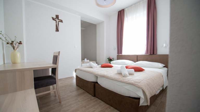 Das Hotel Olivia liegt ideal in Međugorje, nur wenige Gehminuten von der Kirche St. Jacobs und dem Erscheinungsberg entfernt. Die Lage ermöglicht es den Gästen, die religiösen Stätten und Sehenswürdigkeiten der Stadt bequem zu erkunden. Der Hügel Krizevac ist ebenfalls in der Nähe und bietet eine atemberaubende Aussicht. Der nächstgelegene Flughafen ist Mostar, der etwa 28 km entfernt liegt.