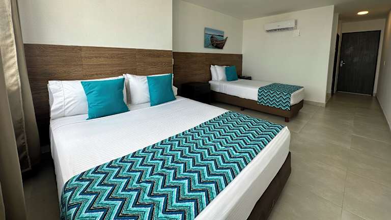 Die Zimmer sind mit Klimaanlage, einem Doppelbett sowie einer Minibar ausgestattet. Zudem sind ein Safe, ein Telefon, Sat-TV und kostenfreies WLAN vorhanden. Die Badezimmer verfügen über eine Dusche. Es sind auch rollstuhlgerechte Zimmer erhältlich, sowie Familien- und Nichtraucherzimmer.