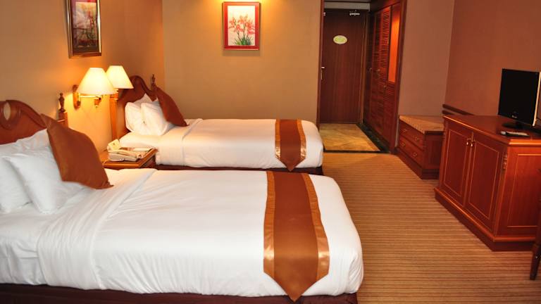 Das Mulia Hotel in Brunei bietet seinen Gästen eine komfortable Unterkunft in der Nähe des internationalen Kongresszentrums. Genießen Sie den Außenpool und den kostenfreien Shuttleservice. Die klimatisierten Zimmer sind gut ausgestattet und verfügen über Sat-TV, einen Safe und Kaffee- und Teezubehör. Das Hotel bietet auch organisierte Ausflüge und einen Wäscheservice. Probieren Sie die vielfältigen Speisen im Goldiana Café and Lounge oder im chinesischen Restaurant Vanda. Das Hotel liegt nur 2 km vom Flughafen Brunei entfernt.