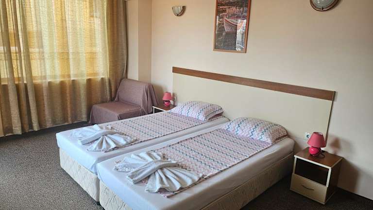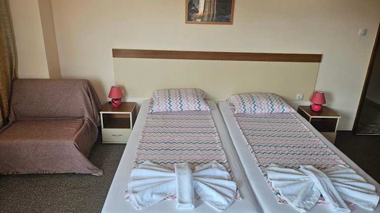 Das Hotel Orchidea befindet sich im neuen Teil von Sozopol und liegt nur 150 m vom zentralen Strand entfernt. Von den Terrassen des Hotels aus haben Sie einen herrlichen Blick auf die Altstadt und das Meer. In unmittelbarer Nähe befindet sich die Haupteinkaufsstraße mit einer Vielzahl von Bars, Geschäften und Cafés. Die Altstadt von Sozopol ist zu Fuß erreichbar und lädt zum Erkunden der historischen Gebäude entlang der Schwarzmeerküste ein. Der zentrale Busbahnhof ist nur 200 m entfernt und der Strand Harmani ist 300 m entfernt. Der Flughafen Burgas ist 40 km entfernt und kann bequem mit dem Shuttleservice des Hotels erreicht werden.
