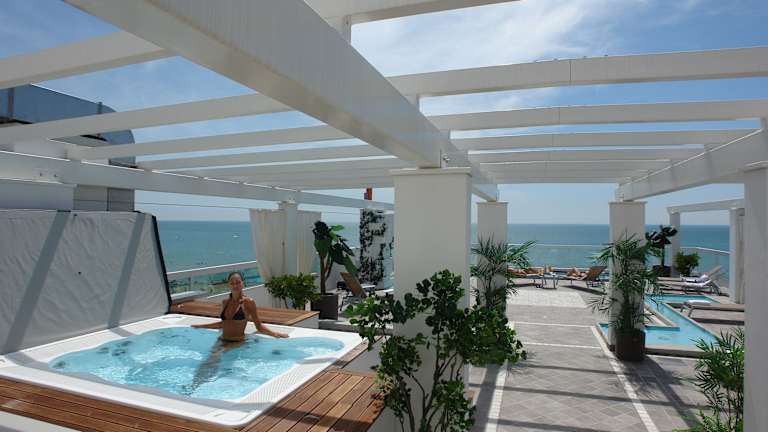 Das Hotel Orizzonte bietet seinen Gästen die Möglichkeit, Fahrräder kostenlos auszuleihen und die Umgebung zu erkunden. Der Wasserpark Aqualandia ist nur 10 Fahrminuten entfernt und bietet Spaß und Unterhaltung für die ganze Familie. Gäste können auch das Solarium auf der obersten Etage des Hotels nutzen, das mit einem Whirlpool, Wasserdüsen und -pfaden ausgestattet ist. Das Hotel bietet seinen Gästen eine Vielzahl von Aktivitäten und Möglichkeiten, um ihren Aufenthalt unvergesslich zu machen.
