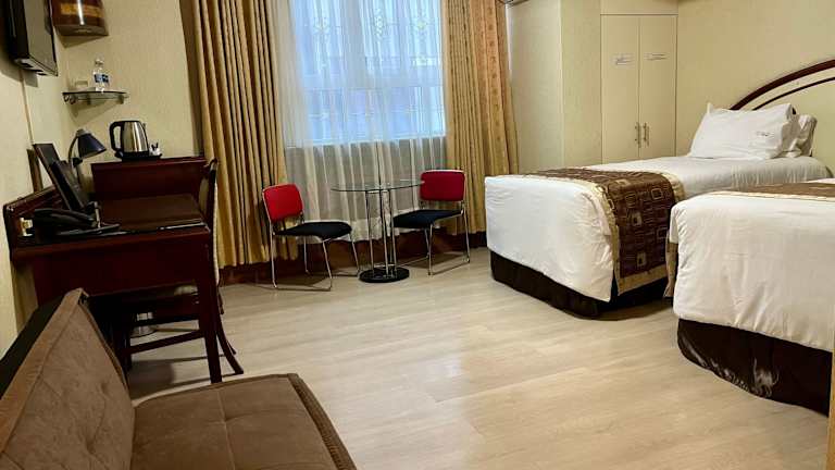 Die Zimmer sind mit Heizung ausgestattet und bieten ein Doppelbett, ein Queensize-Bett oder ein Kingsize-Bett. Zustellbetten sind verfügbar. Zudem befinden sich eine Minibar, ein Schreibtisch, eine Hosenpresse, ein Telefon, ein Flachbildschirmfernseher sowie kostenloses WLAN in den Zimmern. Die Badezimmer sind mit Duschen ausgestattet und enthalten Kosmetikartikel. Das Hotel bietet Nichtraucherzimmer.