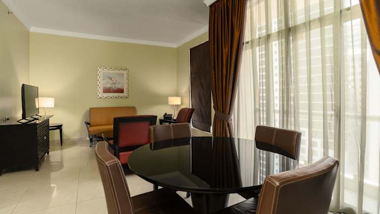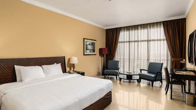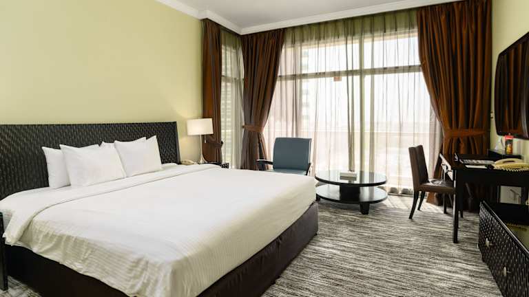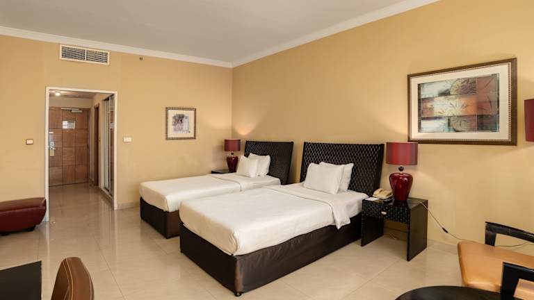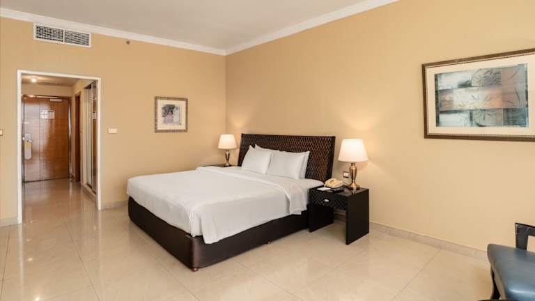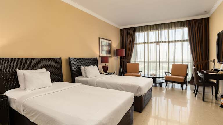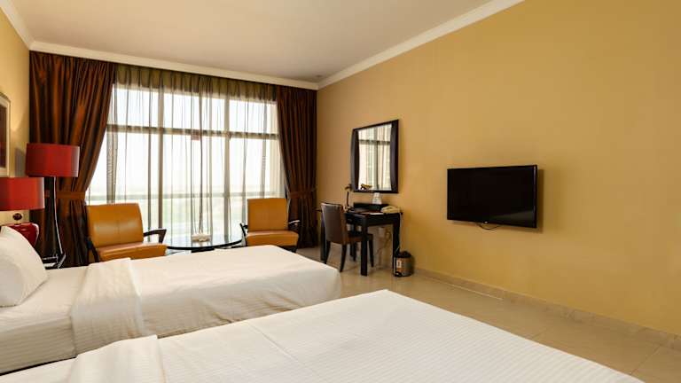 Das Oryx Hotel bietet 122 Zimmer auf 18 Etagen. Alle Zimmer sind komfortabel ausgestattet und verfügen über eine Klimaanlage, Sat-TV und ein großes Badezimmer mit Badewanne und Bademänteln. Eine Minibar und Tee-/ Kaffeezubehör gehören ebenfalls zur Ausstattung der Zimmer. Das Hotel verfügt über rollstuhlgerechte Einrichtungen und bietet einen Aufzug für den einfachen Zugang zu den Zimmern.