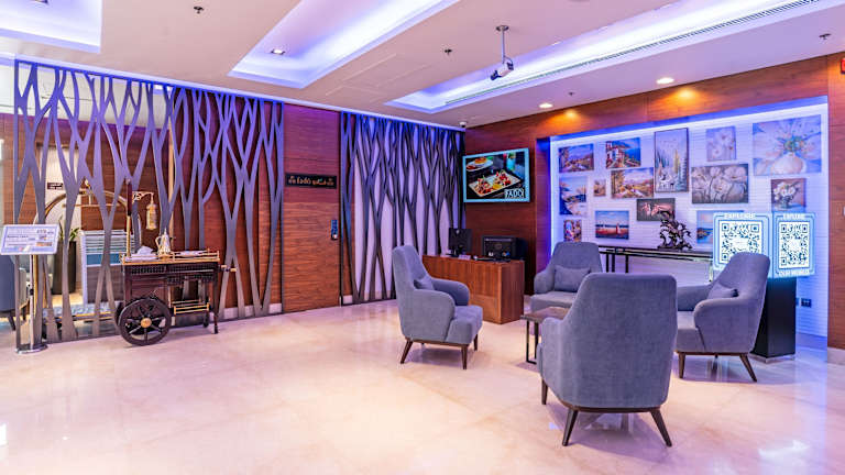 Das Hotel verfügt über zwei Restaurants, einen Speiseraum, ein Café und eine Bar. Das Restaurant Horizon bietet À-la-carte-Gerichte und das Frühstück wird als Buffet serviert. Im Café am Pool können Sie eine Wasserpfeife genießen und die Blue Line Bar bietet Live-Musik. Wählen Sie zwischen verschiedenen Verpflegungsoptionen, darunter Frühstück, Halbpension und Vollpension.