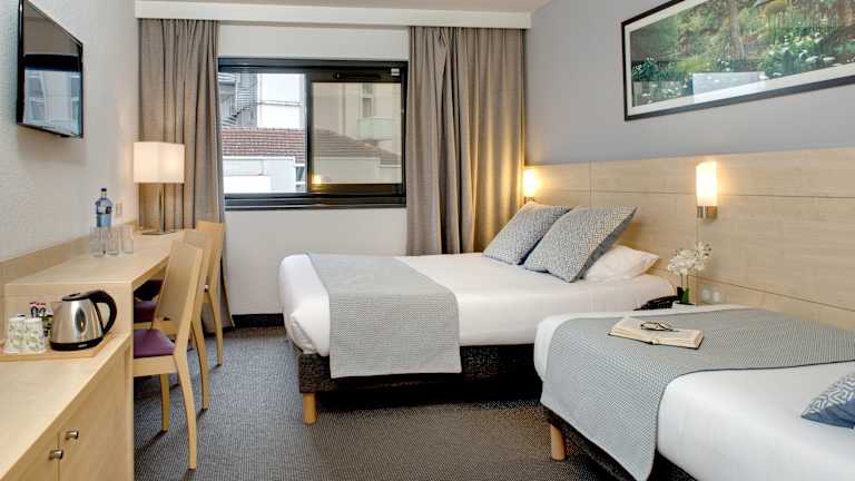 Das Hotel verfügt über 155 Zimmer, die sich über 8 Etagen verteilen. Die Zimmer sind über einen Aufzug erreichbar und bieten Annehmlichkeiten wie eine Klimaanlage, einen Flachbild-TV, kostenloses WLAN und ein eigenes Bad. Einige Zimmer sind barrierefrei eingerichtet.