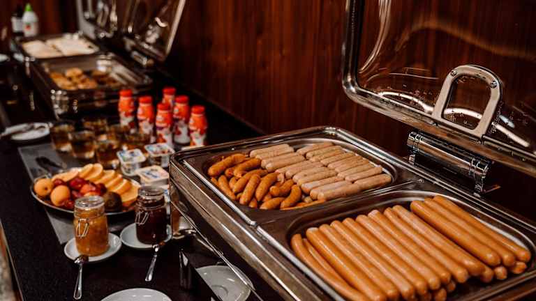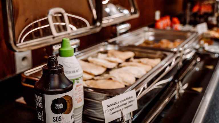 Im Restaurant des Hotels wird jeden Morgen Frühstück serviert, wobei der Schwerpunkt auf polnischer Küche liegt. Zudem gibt es die Möglichkeit, Mahlzeiten in die Unterkunft liefern zu lassen oder das Frühstück in Form eines Mitnahmebehälters zu erhalten.