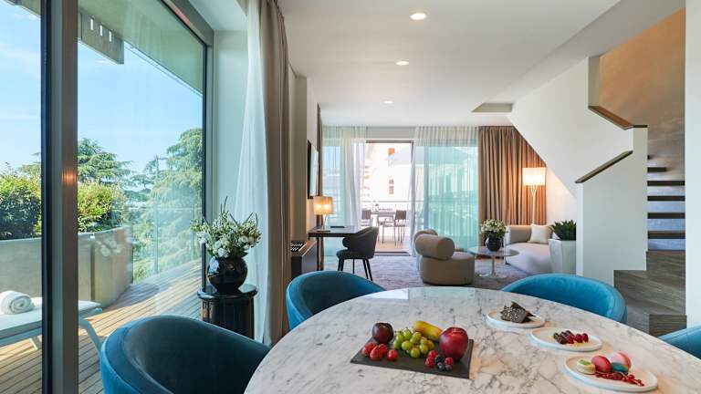 Portorož – der Hafen der Rose – lockt seit vielen Jahrhunderten mit therapeutischen Bädern und Spaß. Bereits im 13. Jahrhundert behandelten Benediktiner Mönche ihre Besucher mit Meerwasser und Salzen. Im 19. Jahrhundert kamen vor allem der europäische Adel und das gehobene Bürgertum in den Genuss der heilenden Wirkung. Unsere 164 Zimmer und 17 Suiten reflektieren die sagenumworbene Geschichte des Palace Portorož und bieten imposante Ausblicke auf die Adria und die istrische Landschaft. Tauchen Sie ein in die Welt des venezianischen Lebensgefühls und in die Opulenz der Wiener Habsburger.