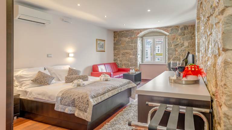 Das Palace Suites Heritage Hotel - Adults Only ist ein luxuriöses Boutique-Hotel in Split, das seinen Gästen ein einzigartiges Erlebnis bietet. Die Zimmer sind stilvoll eingerichtet und verfügen über moderne Annehmlichkeiten wie Flachbild-TVs und kostenfreies WLAN. Die Lage neben dem Diokletianpalast ermöglicht es den Gästen, die lebhafte Atmosphäre des Hauptplatzes von Split zu erleben. Das Hotel bietet auch ein Restaurant und einen Fitnessraum für die Gäste.