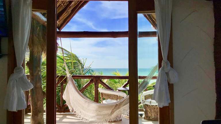 Die Zimmer im Palapas Del Sol verteilen sich auf 6 Cottages am Strand. Jedes Cottage ist im traditionellen Palapa-Stil erbaut, mit mit Palmwedeln bedeckten Dächern. Die Zimmer sind klimatisiert und verfügen über Fliesenböden und eine einzigartige mexikanische Einrichtung. Zur Ausstattung gehören ein eigenes Bad, ein Sitzbereich mit einer iPod-Dockingstation und eine Hängematte. Jedes Zimmer hat zudem eine private Terrasse mit Hängematten und Moskitonetzen an den Fenstern, um Ihnen einen erholsamen Schlaf zu ermöglichen.