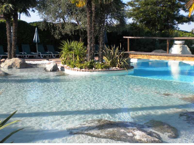 Das Hotel hat einen schönen Pool, der von einem üppigen grünen Garten umgeben