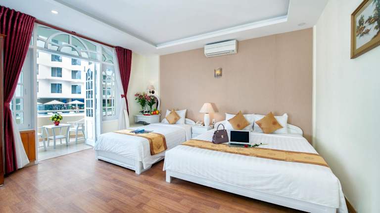 Verbringen Sie einen angenehmen Aufenthalt im Palm Beach Hotel in Nha Trang. Das Hotel bietet eine gute Lage in der beliebten Gegend Tay Balo und ist nur wenige Minuten vom Bahnhof entfernt. Genießen Sie den Außenpool, die gastronomischen Einrichtungen und den kostenlosen WLAN-Zugang. Das freundliche Personal steht Ihnen rund um die Uhr zur Verfügung und organisiert gerne Transfers, Wäsche- und Bügelservice sowie Touren.