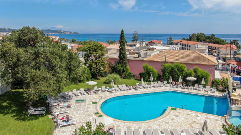 Das Hotel Palmyra befindet sich in idealer Lage in Argasi, nur 100 m vom Strand entfernt. Sie erreichen das Zentrum von Argasi innerhalb weniger Minuten und können die umliegenden Bars, Restaurants und Geschäfte erkunden. Der Hafen und der Hauptort Zakynthos sind nur 3,5 km entfernt und der Flughafen Zakynthos ist in nur 6 km erreichbar.