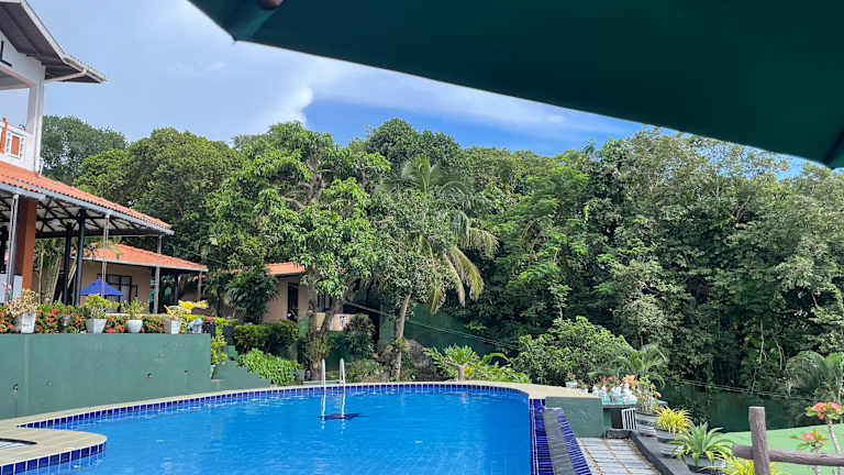 Das Hotel Panorama in Unawatuna bietet einen erholsamen Aufenthalt mit einem Außenpool und einem atemberaubenden Poolblick. Die Unterkunft verfügt über kostenfreies WLAN und kostenlose Privatparkplätze. Genießen Sie auch die kulinarischen Köstlichkeiten im hoteleigenen Restaurant. Die klimatisierten Zimmer laden mit einem gemütlichen Sitzbereich zum Entspannen ein und jedes Zimmer verfügt über ein eigenes Badezimmer. Der Garten, die Terrasse und die Bibliothek bieten zusätzliche Möglichkeiten zur Entspannung. Die Lage des Hotels ermöglicht es Ihnen, die Japanische Friedenspagode und den Tempel Yatagala Raja Maha Viharaya in kurzer Entfernung zu besuchen. Der internationale Flughafen Bandaranaike ist etwa 155 km entfernt.