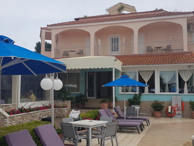 Das Hotel befindet sich in Koukounaries, etwa 10 km von der lebhaften Stadt Skiathos entfernt. In der näheren Umgebung gibt es zahlreiche Restaurants und Geschäfte. Die Strände Koukounaries und Agia Eleni sind ebenfalls in der Umgebung, mit Sandstränden und kostenpflichtigen Liegen und Sonnenschirmen.