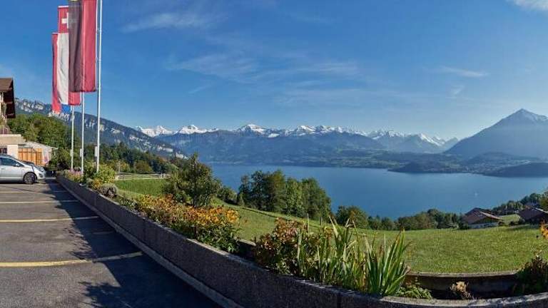Das Hotel Restaurant Panorama in Aeschlen ob Gunten bietet seinen Gästen einen herrlichen Blick auf den Thunersee und ein komfortables Ambiente. Das Restaurant lockt mit leckeren Speisen und einer Terrasse, auf der Sie den Ausblick genießen können. Die Zimmer sind gemütlich eingerichtet und verfügen über Annehmlichkeiten wie einen Flachbild-Sat-TV und ein eigenes Bad. Konferenzeinrichtungen und ein Kinderspielplatz stehen ebenfalls zur Verfügung. In der Umgebung können Sie verschiedene Aktivitäten wie Wandern unternehmen und die Parkplätze des Hotels nutzen Sie kostenfrei.