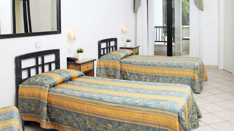 Die 87 Zimmer des Hotels sind auf 7 Etagen verteilt und bieten eine komfortable und moderne Ausstattung. Jedes Zimmer verfügt über eine Klimaanlage, einen möblierten Balkon, Sat-TV und eine Minibar. Das eigene Bad ist mit einer Dusche, einer Badewanne, einem Bidet und einem Haartrockner ausgestattet. Rollstuhlgerechte Zimmer mit barrierefreiem Bad sind ebenfalls verfügbar.