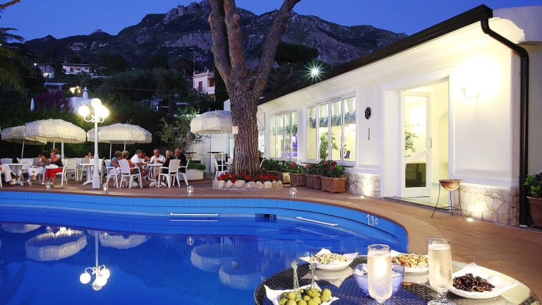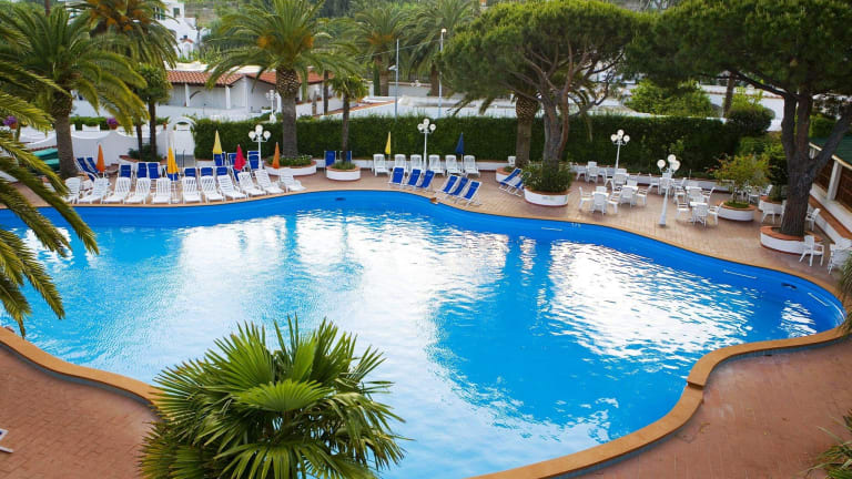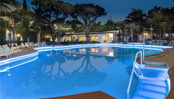 Das Hotel Terme Park Imperial*** befindet sich in der Gemeinde Forio, nur 600 Meter von der schönen Bucht von Citara mit den Poseidon Gärten (ca. 700 Meter), ca. 600 Meter vom malerischen Strand von Cava dell'Isola und ca. 2 km vom Zentrum von Forio entfernt, das leicht mit öffentlichen Bussen erreicht werden kann (Haltestelle nur 50 Meter entfernt). Vom Juni bis einschliesslich September gibt es einen hoteleigenen Shuttle-Bus, der zu festgelegten Zeiten zum und vom Citara -Strand fähr. Das Haupthaus des Hotels mit dem Haupteingang, wo Sie die Rezeption, Lobby, Restaurant und die Meerblickzimmer finden, ist bequem von der Hauptstrasse aus zu erreichen. Die Anlage ist sehr weitläufig und ruhig in einem wunderschönen Garten mit mediterranen Bäumen und Pflanzen gelegen, wo sich der grosse Thermalaussenpool mit Poolbar, das Thermalhallenbad und die Wellness/Kurabteilung befinden. Von im Garten gelegenen Aussenpool geniessen Sie einen majestätischen Blick auf den Monte Epomeo. Ein Teil der Zimmer liegen im Haupthaus, doch der Grossteil der Zimmer befinden sich ruhig gelegen in verschiedenen Gebäuden im weitläufigen Hotelpark.