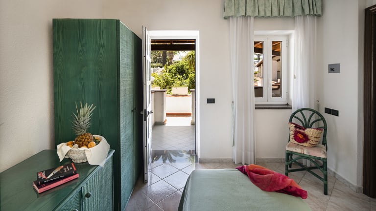 Alle Zimmer verfügen über privates Bad mit Dusche/WC, SAT-TV, Telefon, Frigobar, kleiner Safe, Fön im Bad, Klimaanlage (vom 15/06 - 15/09) . Die Standardzimmer verfügen nur über Fenster und haben keinen Blick, die Standardzimmer mit Balkon oder Terrasse befinden sich im Hotelpark, die Meerblickzimmer verfügen über Meerblick mit Balkon oder einer Gemeinschaftsterrasse.