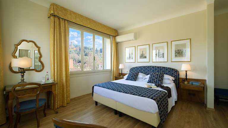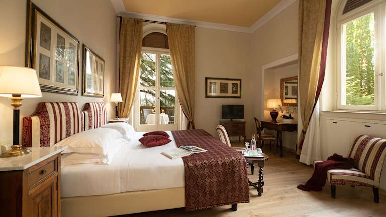 Das Park Palace Hotel in Florenz ist ein historisches Juwel mit einem großen, möblierten Garten mit Pool und einer perfekten Lage, nur eine 5-minütige Busfahrt vom Stadtzentrum entfernt. Der Charme der toskanischen Hügel ist in den geräumigen Zimmern mit antiken Möbeln und Kunstwerken zu spüren. Das Frühstück bietet eine große Auswahl an regionalen Produkten und wird auf der Terrasse mit Blick auf den Garten serviert. Das Hotel bietet außerdem eine Leselounge mit Kamin und Perserteppichen sowie ein Restaurant und eine Bar.