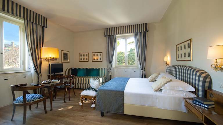 Die Zimmer im Park Palace Hotel sind geräumig und bieten antike Möbel sowie Kunstwerke. Die Zimmer sind mit einem LCD-Sat-TV ausgestattet und einige bieten einen Blick auf die umliegende Landschaft. WLAN ist in den öffentlichen Bereichen kostenlos verfügbar.