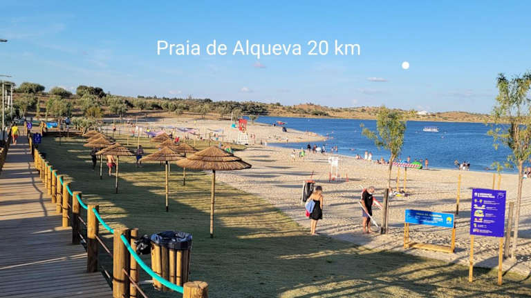 Das Hotel Passagem do Sol liegt in Moura am linken Ufer des Flusses Guadiana. Die Umgebung ist geprägt von der typischen Landschaft des Alentejo und bietet eine ruhige und idyllische Atmosphäre. In nur 22 Fahrminuten erreichen Sie den beeindruckenden Alqueva-Stausee, der für seine Schönheit und sein vielfältiges Freizeitangebot bekannt ist. Der Flughafen Beja ist ebenfalls gut erreichbar und liegt nur 47 Fahrminuten entfernt.