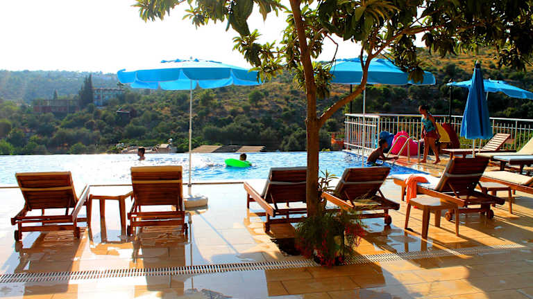 Das Patara Blue Hotel ist ein charmantes Hotel in Kas, das seinen Gästen eine entspannte Atmosphäre und zahlreiche Annehmlichkeiten bietet. Genießen Sie den Außenpool, das kostenlose WLAN und den freundlichen Service des mehrsprachigen Personals. Das Hotel befindet sich in der Nähe von Sehenswürdigkeiten wie der Ruinenstadt Patara und dem Triumphbogen des Mettius Modestus. Freuen Sie sich auf türkische Küche im hoteleigenen Restaurant und nutzen Sie den Fahrradverleih, um die Umgebung zu erkunden.