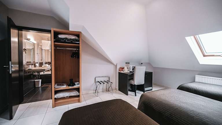 Die Zimmer im Hotel Pax sind kompakt und modern eingerichtet und bieten alles, was Sie für einen angenehmen Aufenthalt benötigen. Die Boxspring-Betten sorgen für einen erholsamen Schlaf und der Flachbild-TV und der kleine Schreibtisch bieten Komfort und Bequemlichkeit. Jedes Zimmer verfügt über ein eigenes Bad mit kostenfreien Pflegeprodukten und einem Haartrockner.