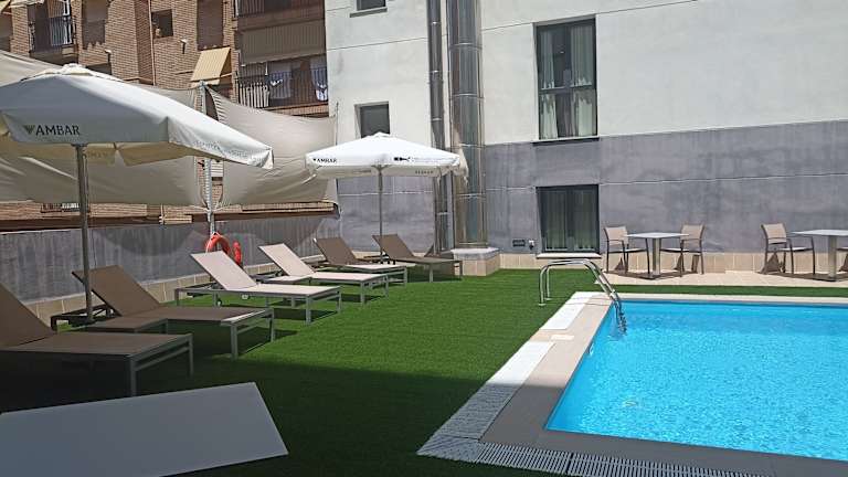 Das Hotel Pedro I De Aragon 4 Estrellas SUPERIOR in Huesca bietet seinen Gästen eine ideale Lage im Zentrum der Stadt, in der Nähe des Stadtparks und der Kathedrale. Die eleganten Zimmer sind klimatisiert und verfügen über einen Balkon mit Blick auf die Straße und den Park. Das Hotelrestaurant serviert typische regionale Küche und eine Bar sowie eine Terrasse stehen ebenfalls zur Verfügung. Die Mitarbeiter des Hotels sind freundlich und helfen gerne bei der Organisation von Outdoor-Aktivitäten und Ausflügen in die Umgebung.