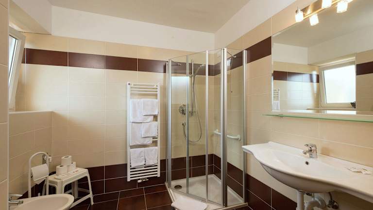 Die geräumigen Suiten in der Pensione Penegalblick bieten Ihnen alles, was Sie für einen erholsamen Aufenthalt benötigen. Genießen Sie den Panoramablick vom eigenen Balkon aus und entspannen Sie im Sitzbereich mit Sofa und TV. Das eigene Bad ist mit einer Dusche ausgestattet.