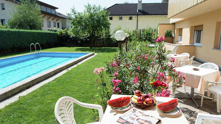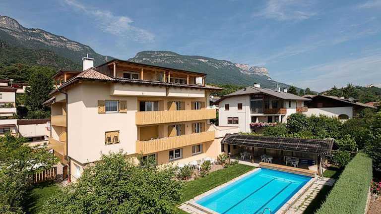 Entspannen Sie am Pool und im gepflegten Garten oder spielen Sie kostenfrei Tischtennis. Unternehmen Sie eine Panoramafahrt entlang der Südtiroler Weinstraße und besuchen Sie auch den nahe gelegenen Kalterer See.