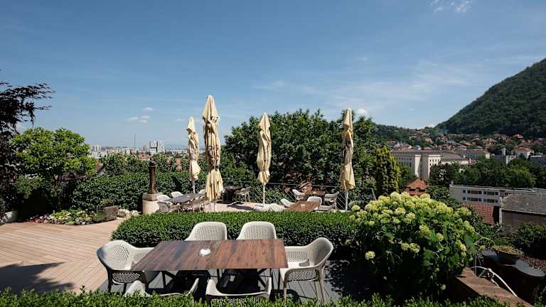 Hotel liegt etwas ausserhalb der Altstadt auf einem Berghang.Sehr schöner Gastgarten mit… weiterlesen