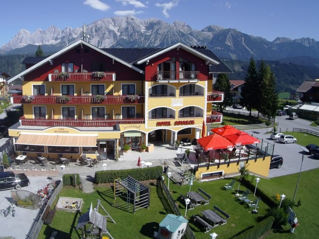Das Hotel Sonneck in Rohrmoos bietet Ihnen die perfekte Lage direkt an den Skipisten des Skigebiets Schladming-Dachstein. Hier können Sie nicht nur einen aktiven Winterurlaub verbringen, sondern auch den Wellnessbereich und das Restaurant des Hotels genießen. Mit kostenfreiem WLAN, komfortablen Zimmern und einem atemberaubenden Bergblick vom Balkon aus ist das Hotel Sonneck eine ideale Wahl für Ihren Aufenthalt.