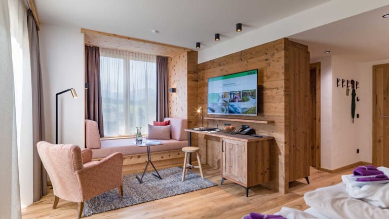 Fühlen Sie sich wohl und geniessen Sie erholsame Stunden in Ihrem Urlaub. Alle Zimmer sind sonnendurchflutet, mit heimische Hölzern, natürlichen Materialien und angenehmen Farben gestaltet und haben einen atemberaubenden Blick auf die Berge!