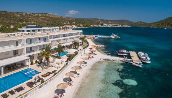 Das Hotel Perla befindet sich an einem wunderschönen Strand mit Liegestühlen und Sonnenschirmen. Die Lage ist perfekt, um das kristallklare Wasser der Adria zu genießen und sich zu entspannen. Das Zentrum von Rogoznica ist nur 1 km entfernt und bietet eine Vielzahl von Geschäften, Restaurants und Unterhaltungsmöglichkeiten. Šibenik, eine charmante Stadt mit historischen Sehenswürdigkeiten, ist nur 23 km entfernt. Der nächstgelegene Flughafen Split ist 31 km entfernt.
