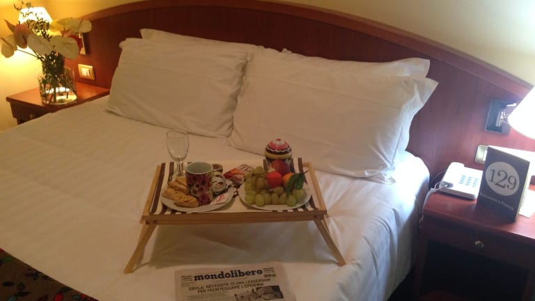 Das Hotel Piero della Francesca bietet 40 Zimmer auf 5 Etagen. Die Zimmer sind modern eingerichtet und verfügen über Annehmlichkeiten wie Sat-TV, Minibar und Klimaanlage. Die Badezimmer sind mit Dusche, Badewanne und Bidet ausgestattet. Familienzimmer sind ebenfalls verfügbar. Kostenloses WLAN und Parkplätze stehen den Gästen zur Verfügung.