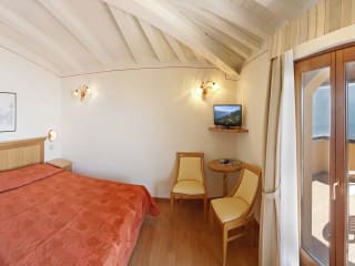 Das Hotelmanagement empfängt Sie herzlich in den komfortabel eingerichteten Zimmern, Juniorsuiten, Suiten, Appartments und Ferienhäusern. Das Hotel verfügt über 74 Zimmer (teils mit Seeblick, teils mit Bergblick, mit Balkon oder Terrasse, Kat. standard, superior u. deluxe, mit allem Komfort ausgestattet ( Telefon, TV-Sat, Safe, Föhn. Kühlschrank ( nur in der Kat. superior) Klimaanlage (teilweise) Wifi. Restaurant, Bar, Panoramaterrasse, Hallenbad mit Kinderbecken, Freibad mit Liegen und Sonnenschirmen, Whirlpool, Shiatsu-Massagesessel.