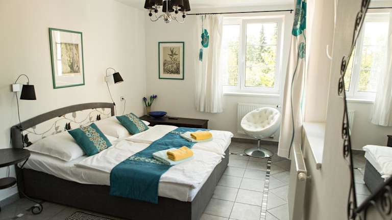In der Umgebung des Hotels gibt es zahlreiche Möglichkeiten für sportliche Aktivitäten und Outdoor-Abenteuer. Rad- und Wanderwege beginnen direkt vor der Haustür und bieten Ihnen die Möglichkeit, die schöne Natur der Umgebung zu erkunden. Bootsfahrten auf den Flüssen Vitava und Otava sind ebenfalls eine beliebte Freizeitaktivität in der Nähe.